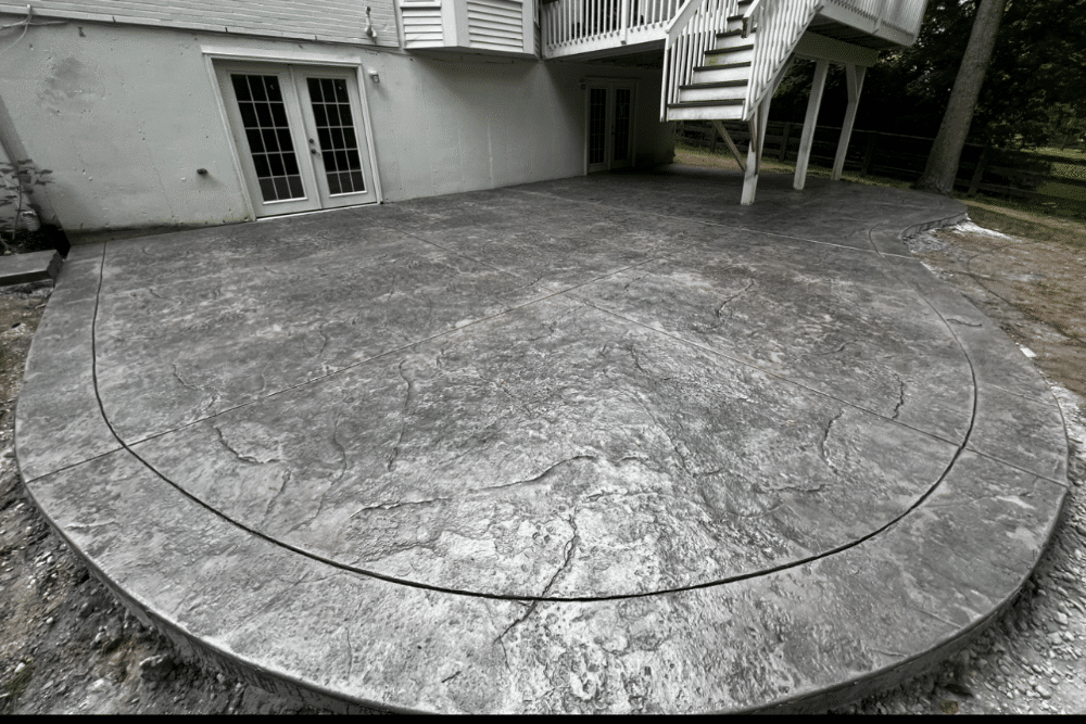 We completed a concrete service project for a home in Hebron, Kentucky. This concrete project features a beautifully finished stamped concrete patio with a natural stone texture and a subtle gray color palette. The curved design complements the home and adds a soft, organic flow to the home’s exterior. The smooth, durable surface provides a stylish and functional outdoor space perfect for relaxing or entertaining. Overall, this installation combines aesthetic elegance with long-lasting performance.