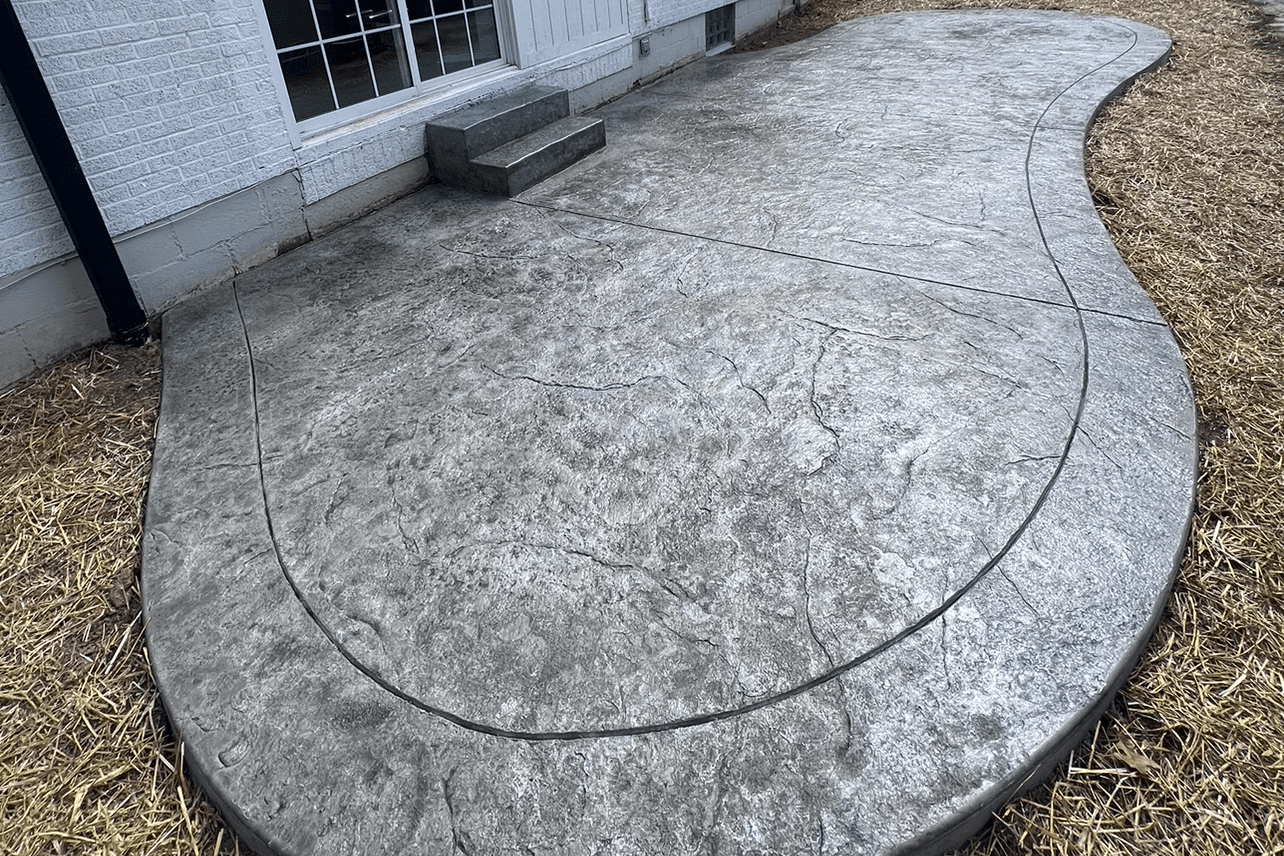 We completed a concrete service project for a home in Independence, Kentucky. This concrete project features a beautifully finished stamped concrete patio with a natural stone texture and a subtle gray color palette. The curved design complements the home and adds a soft, organic flow to the home’s exterior. The smooth, durable surface provides a stylish and functional outdoor space perfect for relaxing or entertaining. Overall, this installation combines aesthetic elegance with long-lasting performance.