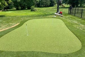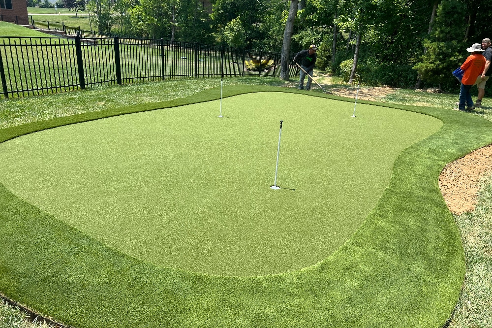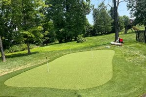 Customer in Burlington, Kentucky recently retired and wanted to enjoy his back yard more and continue working on his golf game, so we installed a putting green in his back yard.